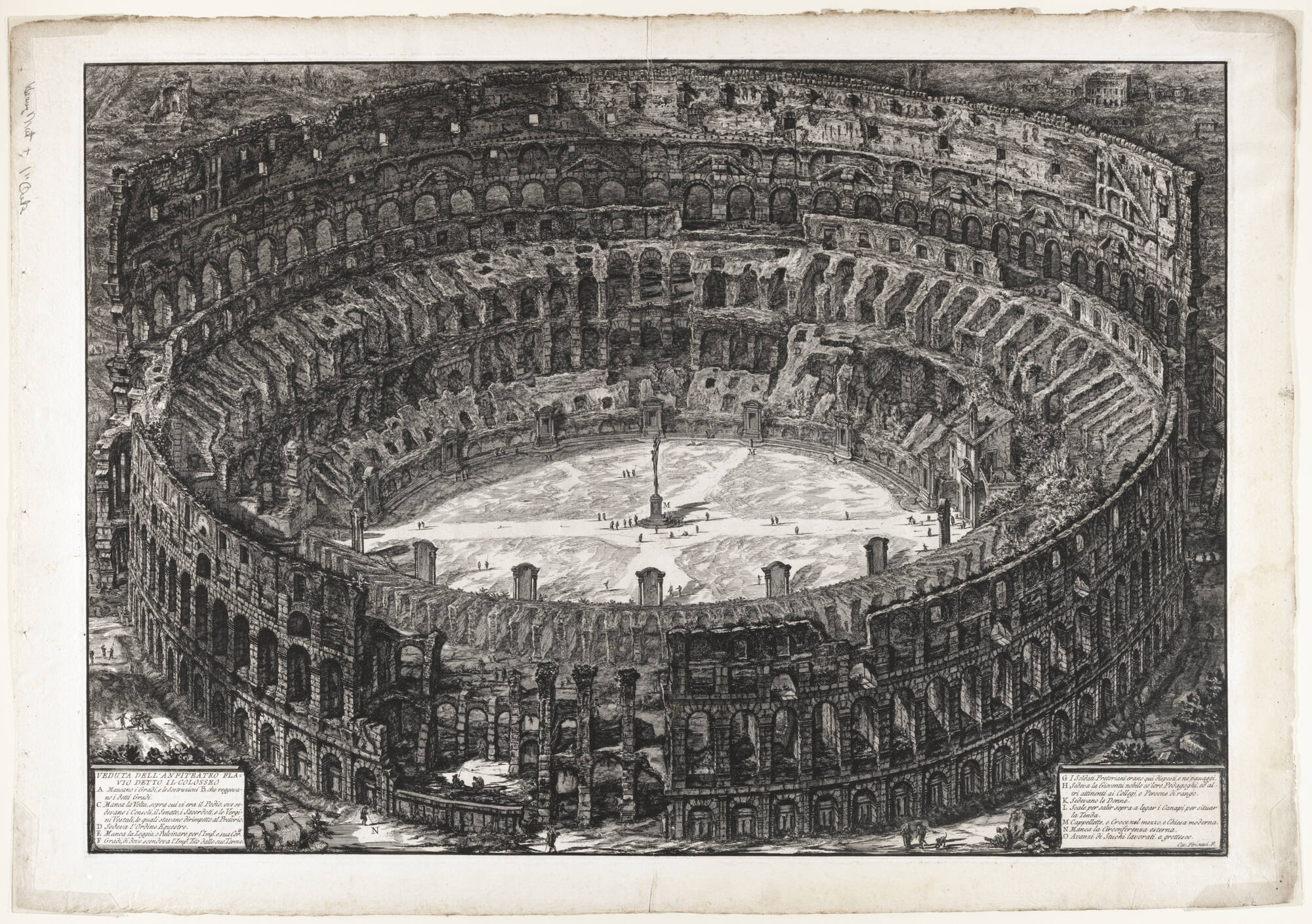 Veduta dell’Anfiteatro Flavio detto il Colosseo (View of the Flavian Amphitheatre known as the Colosseum), from Vedute di Roma disegnate et incise da Giambattista Piranesi Architetto Veneziano
