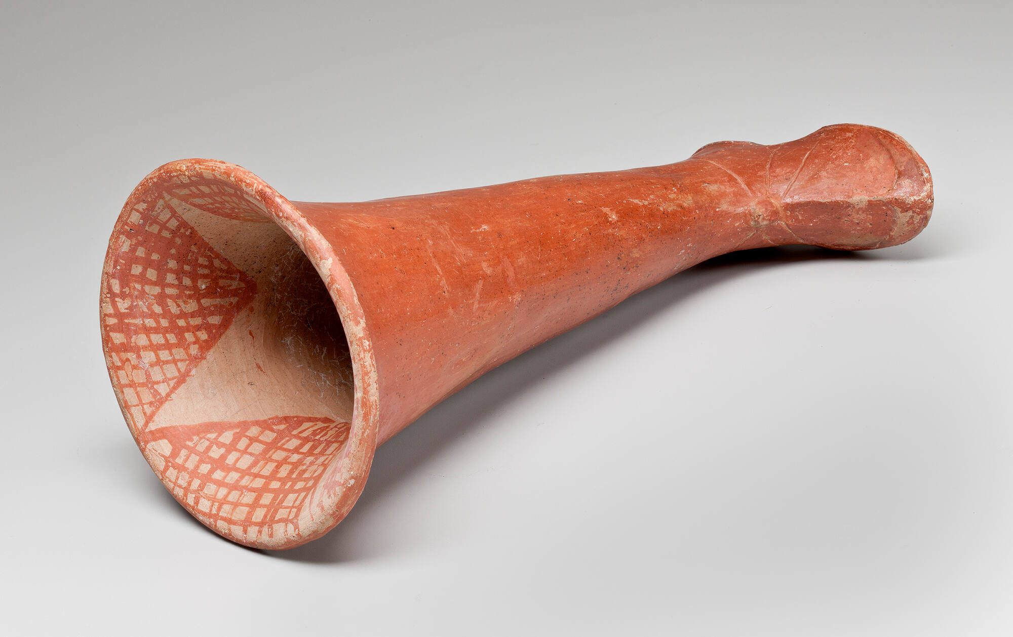Ceramic: buff body with a red burnished slip on the exterior, red paint on the interior