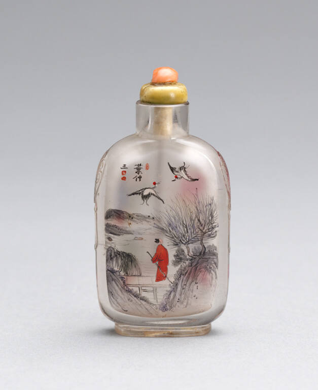 Snuff bottle with three scholars sitting around a table