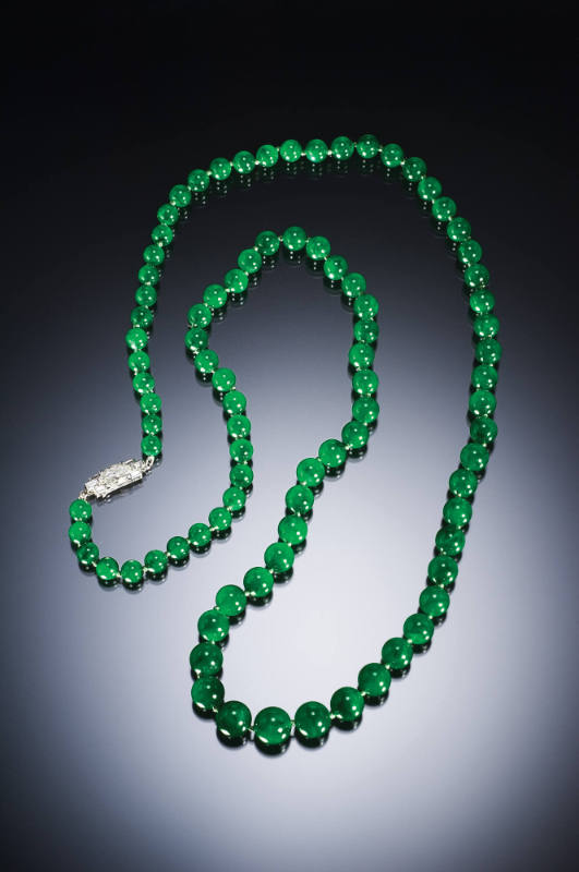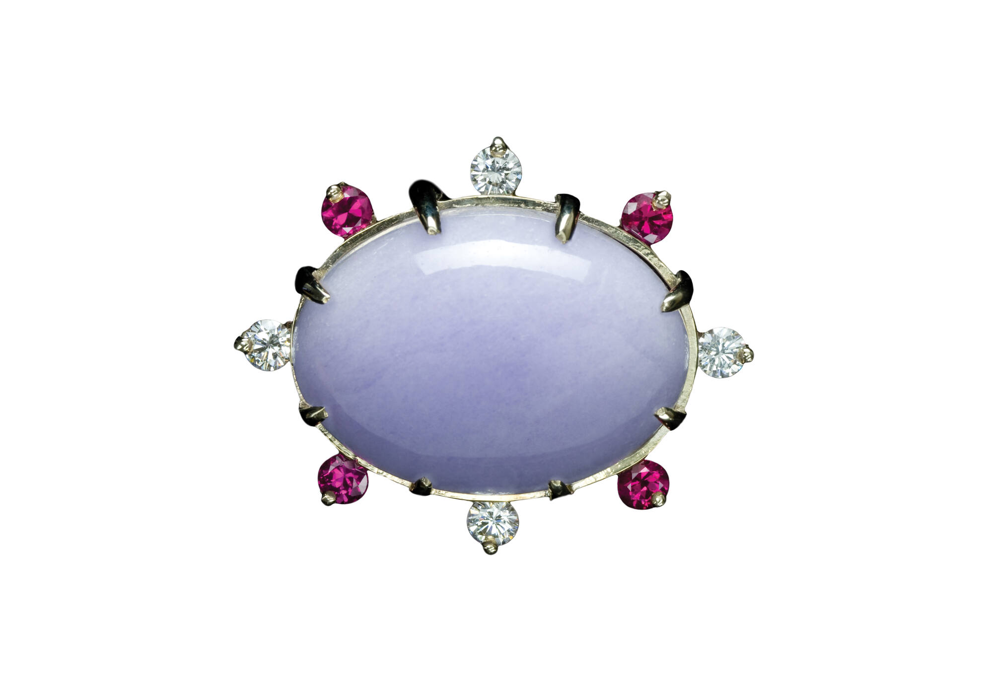 Jadeite jade30.03 carats0.50 total carat weight of 4 round faceted rubies0.40 total carat weight of 4 round brilliant-cut diamonds