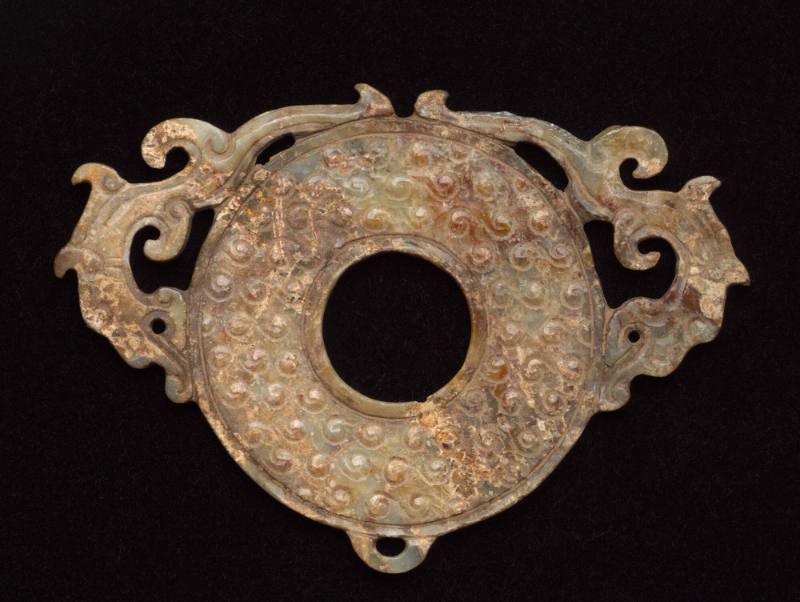 Rectangular goldweight with central coil motif, semi-circle and two borders of repeated lines