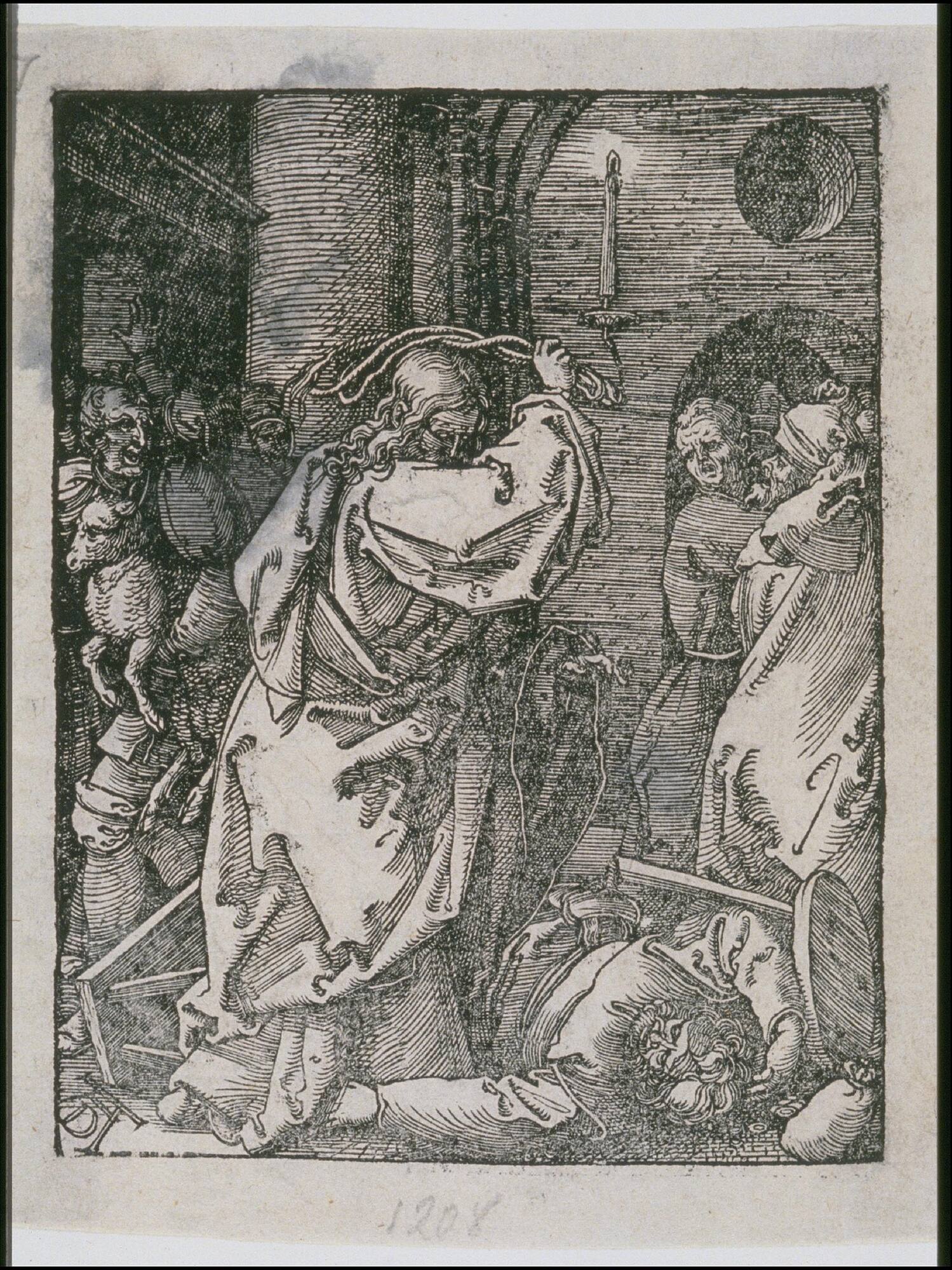 Expulsion of the Money Lenders from The Temple, from the Small Passion (later printing, c. 1540-50)