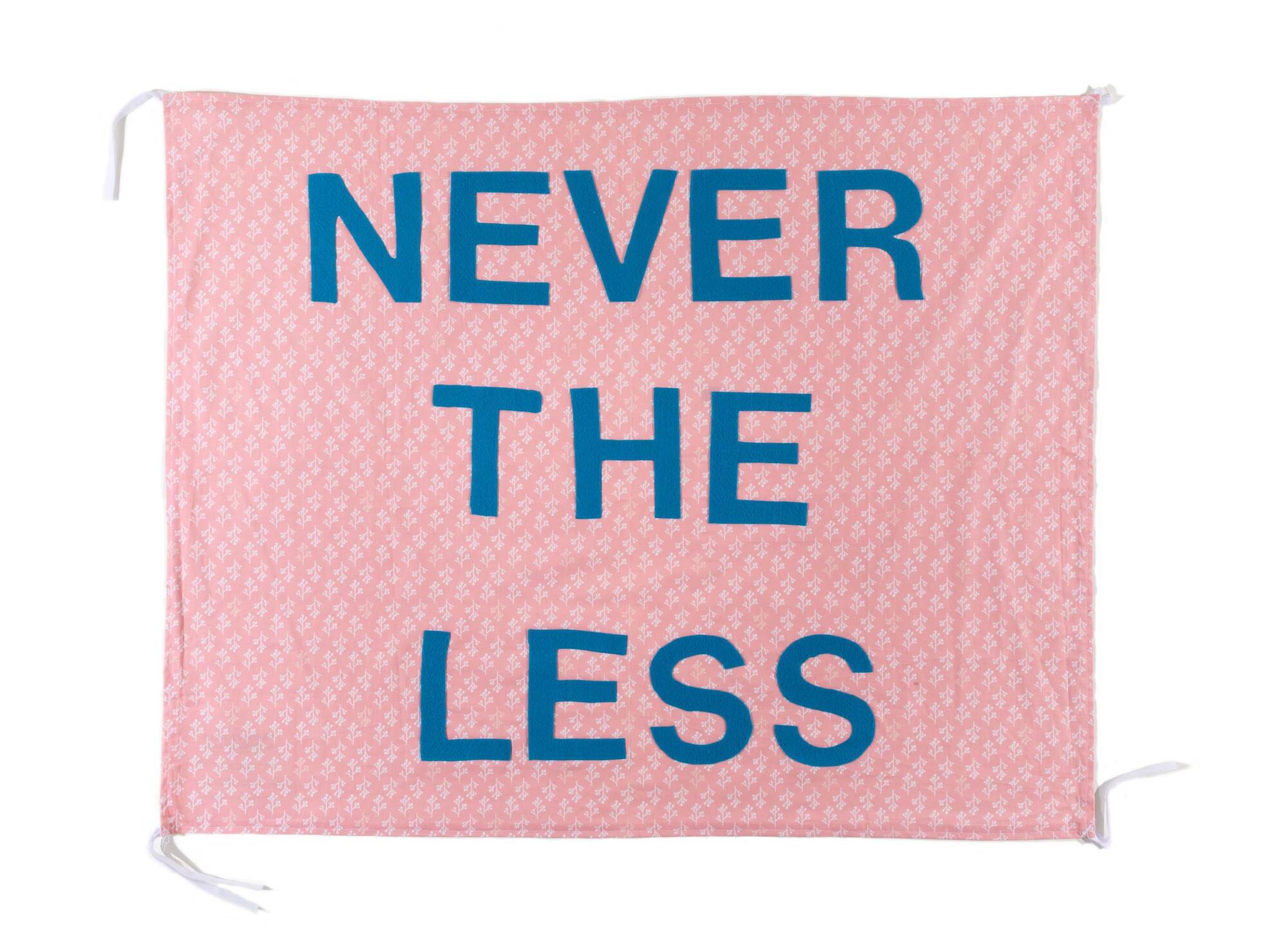 Never the Less, from the artist’s Protest Banner Lending Library (2016–ongoing), created by an anonymous workshop participant during the Johnson Museum exhibition, how the light gets in (September 7–December 8, 2019)