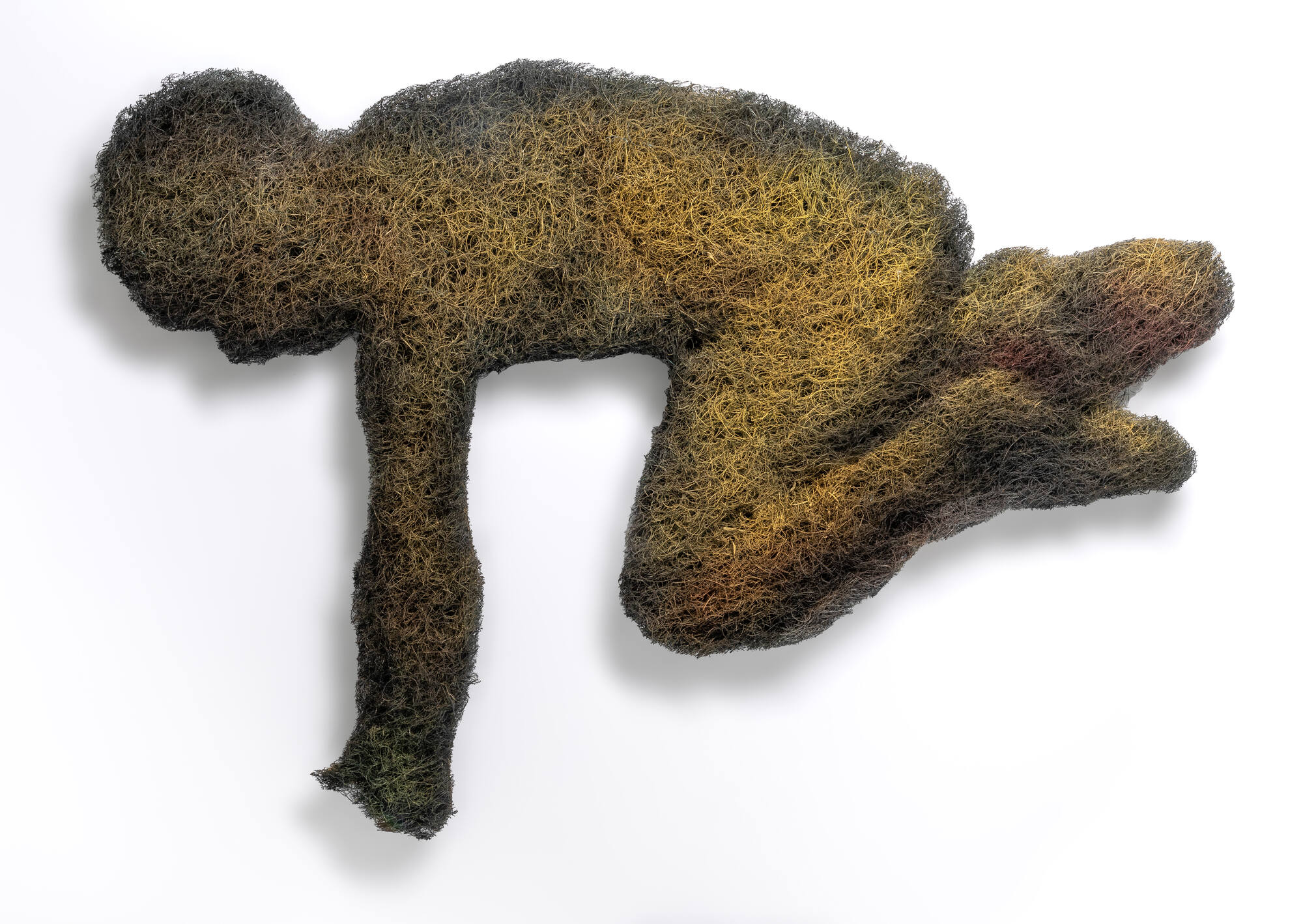 Acrylic paint and rubberized hair on hardboard