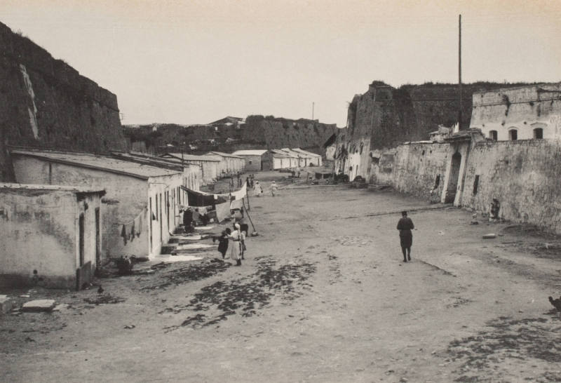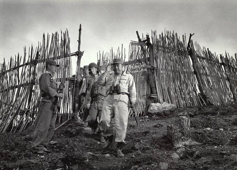 [Chief Han at a primitive mountain fortress ringed by bamboo barricades]