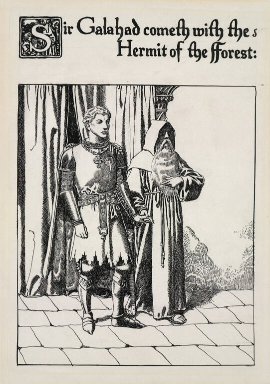 Sir Galahad cometh with the Hermit of the Forest, for The Story of the Grail and the Passing of Arthur, by Howard Pyle (New York: Charles Scriber’s Sons, 1910)
