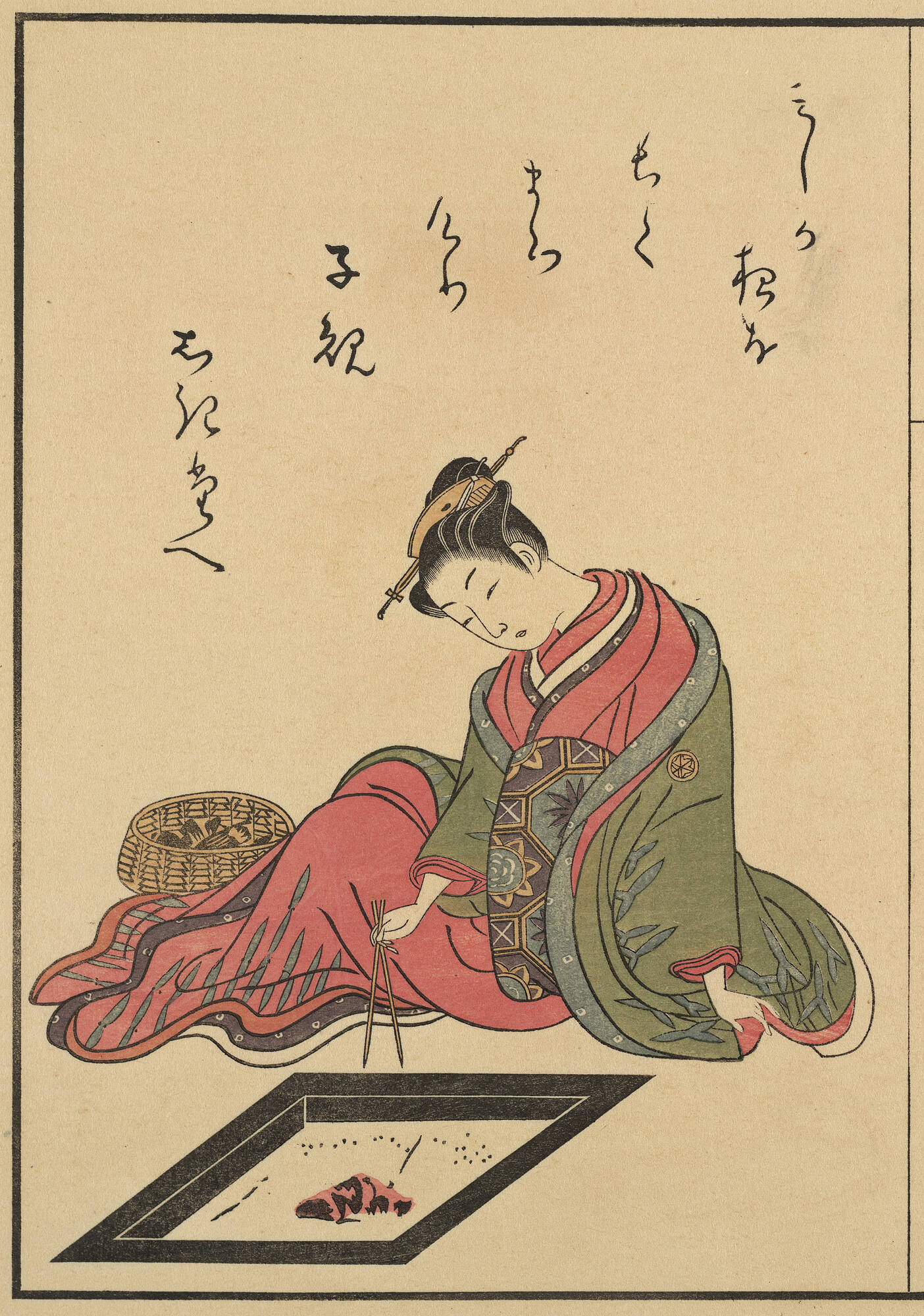 “Shigetae Sitting by the Fire” from “A Collection of Greenhouse Beauties”