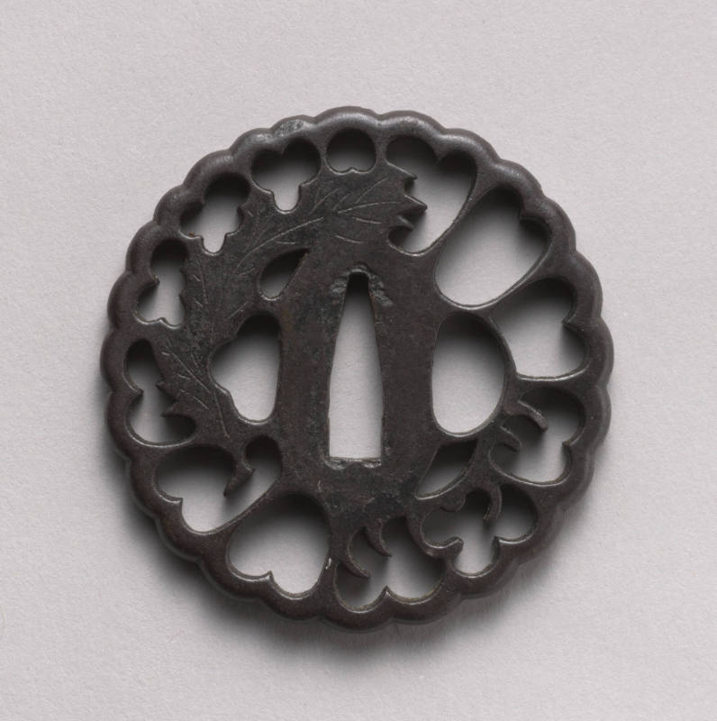 Four-Lobed Tsuba with design of plum, pine and bamboo. (raised edges)