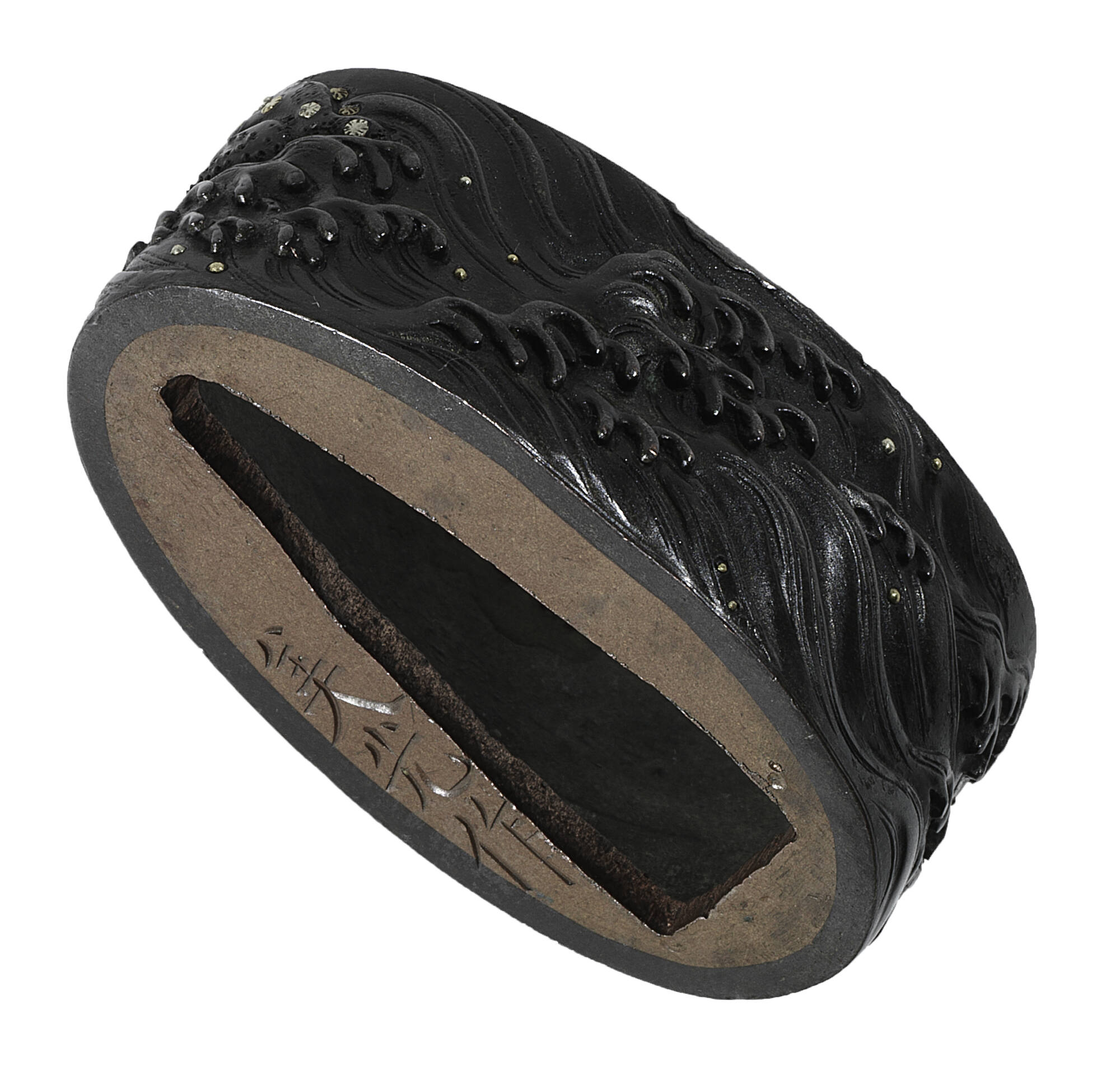 Fuchi-kashira depicting the crossing of the Ujigawa