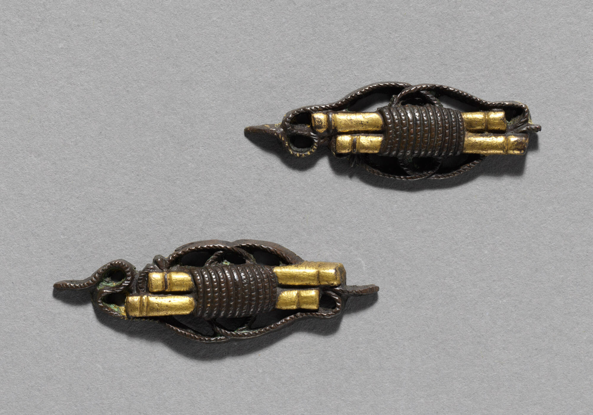 Cast brass with gold inlay