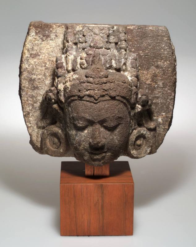 The ceremonial stone yokes of the Classic Period on the Gulf Coast of Mexico were part of the paraphernalia associated with the pan-Mesoamerican ritual ball game. The yokes were probably carved imitations of leather or basketwork hip-protectors and were never worn during the actual ball game. They might have been used in religious ceremonies conducted after the game. Yokes were also often buried with what seem to be decapitated and sacrificed player/warriors. The ritual aspects of this important piece of ball-game equipment have to do with fertility. Stone yokes often depict owls, felines, toads, and serpents, creatures associated with the night sky, earth, and water. This particular yoke seems to be a “toad” type, but it also has elements of the serpent and the cat in its appearance. Toads such as Bufo marinus and B. Valliceps have great symbolic power in Mesoamerica because of their transformative properties, their hallucinogenic skin, their fertility, and their skin-shedding. Skeletal remains of B. marinus have been found in Olmec ceremonial centers and in other Mesoamerican archaeological sites. Toads are depicted on ball-game yokes, perhaps in part as symbols of fertility and renewal. Toads are venerated for their tendency to “sing” just before the rains fall; this predictive power is prized in a society whose subsistence relies on a good yield of rain-dependent crops such as maize. The elaborate scrollwork designs on the sides of the yoke may be glyphs with a specific meaning, perhaps of water or sprouting vegetation. The ends of the yoke are decorated with carved human heads facing each other. These are possibly portraits of the lords involved in the real ball game, or of the Heavenly Twins who are often depicted engaged in the supernatural game. (From “A Handbook of the Collection: Herbert F. Johnson Museum of Art,” 1998)
