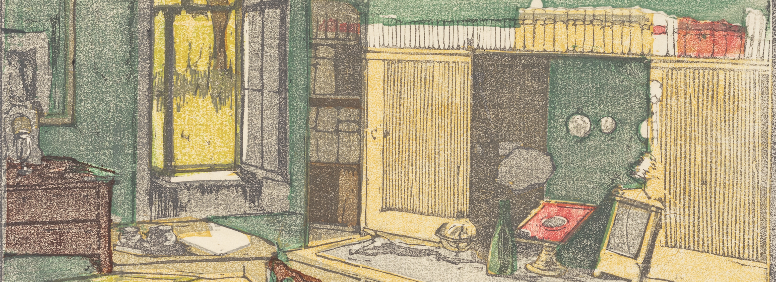 This exhibition celebrates the recent acquisition of a portfolio of twenty-four color woodblock prints by Weimar-born German artist Margarethe Geibel (1876–1955). The series reveals Geibel’s inventive adaptation of Japanese printmaking techniques popular in Europe at the turn of the twentieth century. It also provides a figurative walk through a cultural treasure—the house and collections of renowned German writer Johann Wolfgang von Goethe (1749–1832), who, like Geibel, called Weimar home.